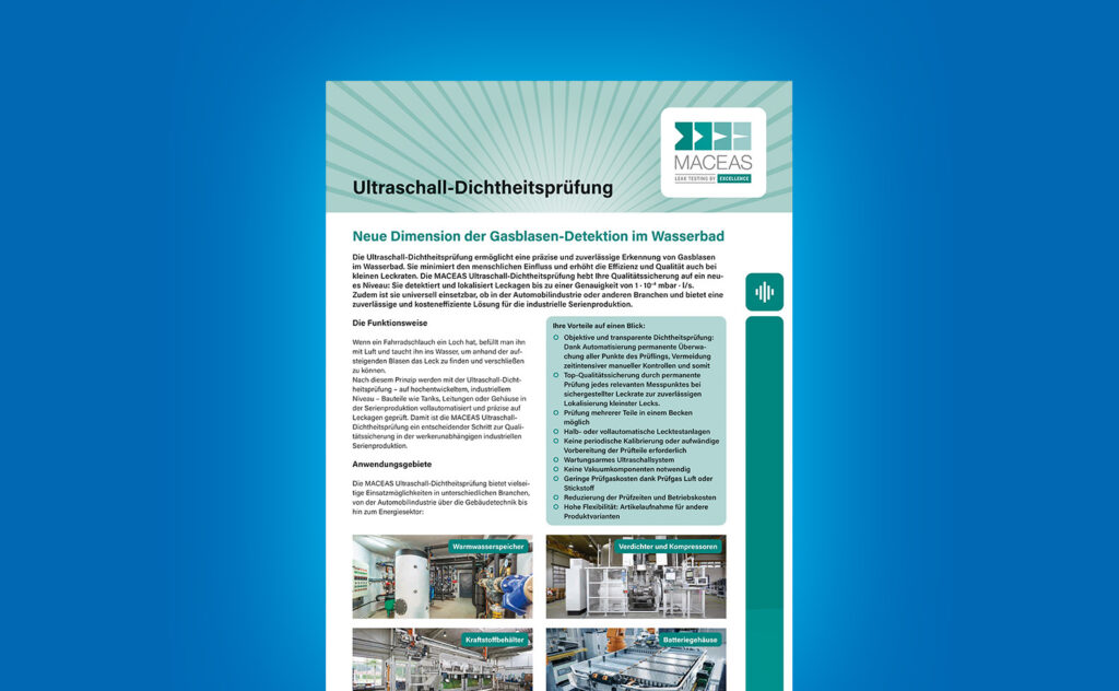 MACEAS-Broschüre rund um das Thema Ultraschall-Dichtheitsprüfung